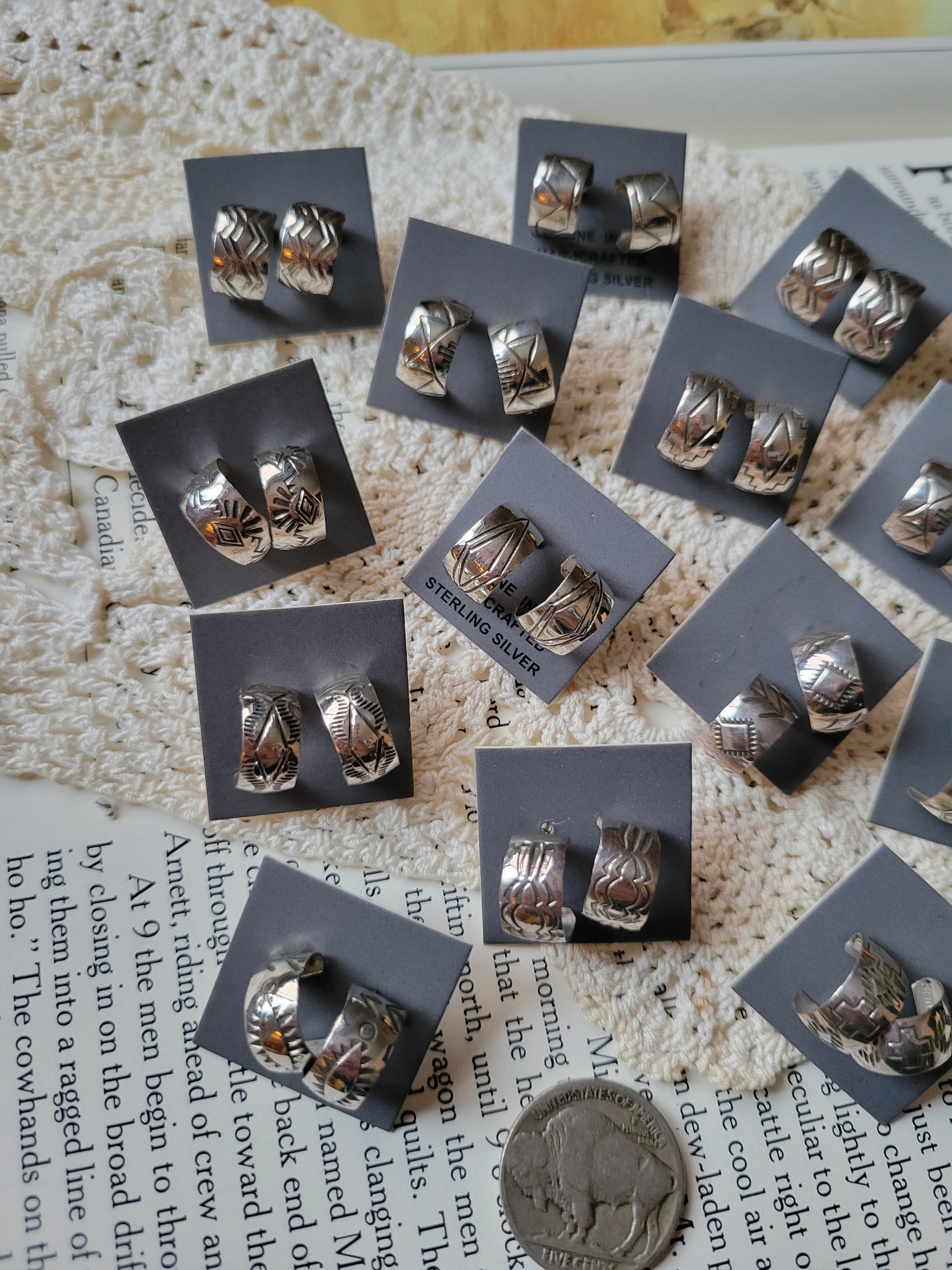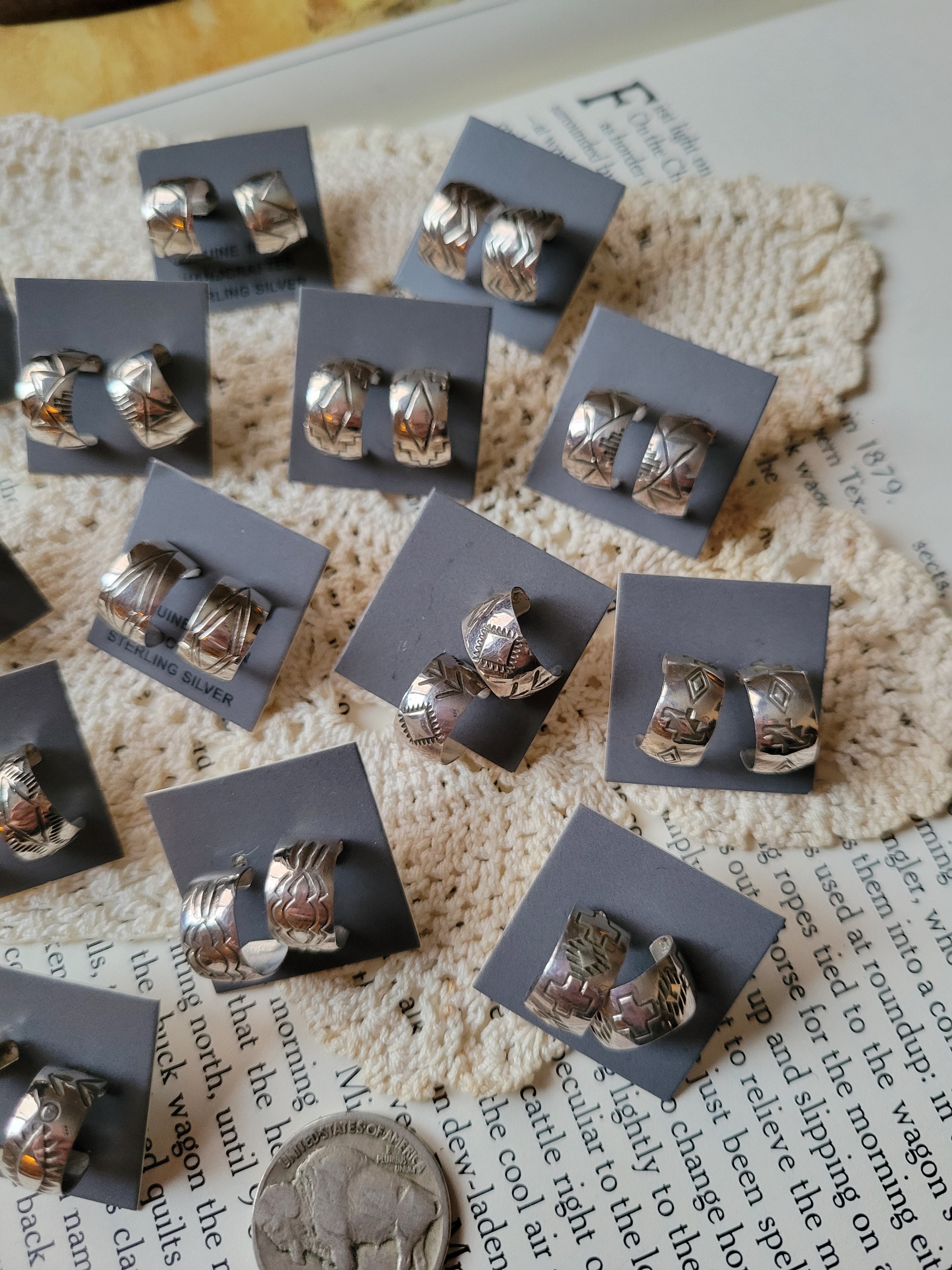 Native Made Sterling Silver Stamped Huggie Hoop Studs