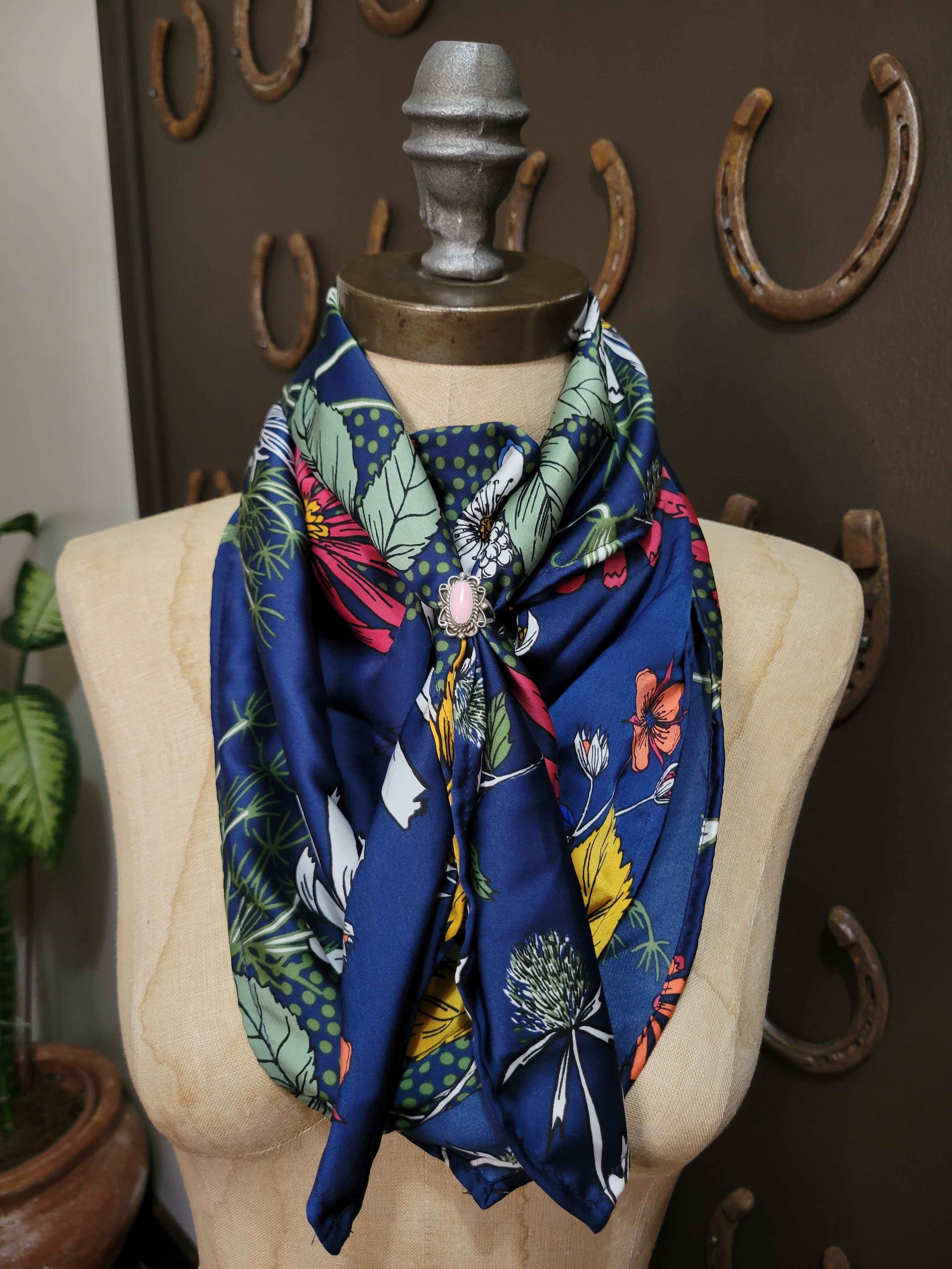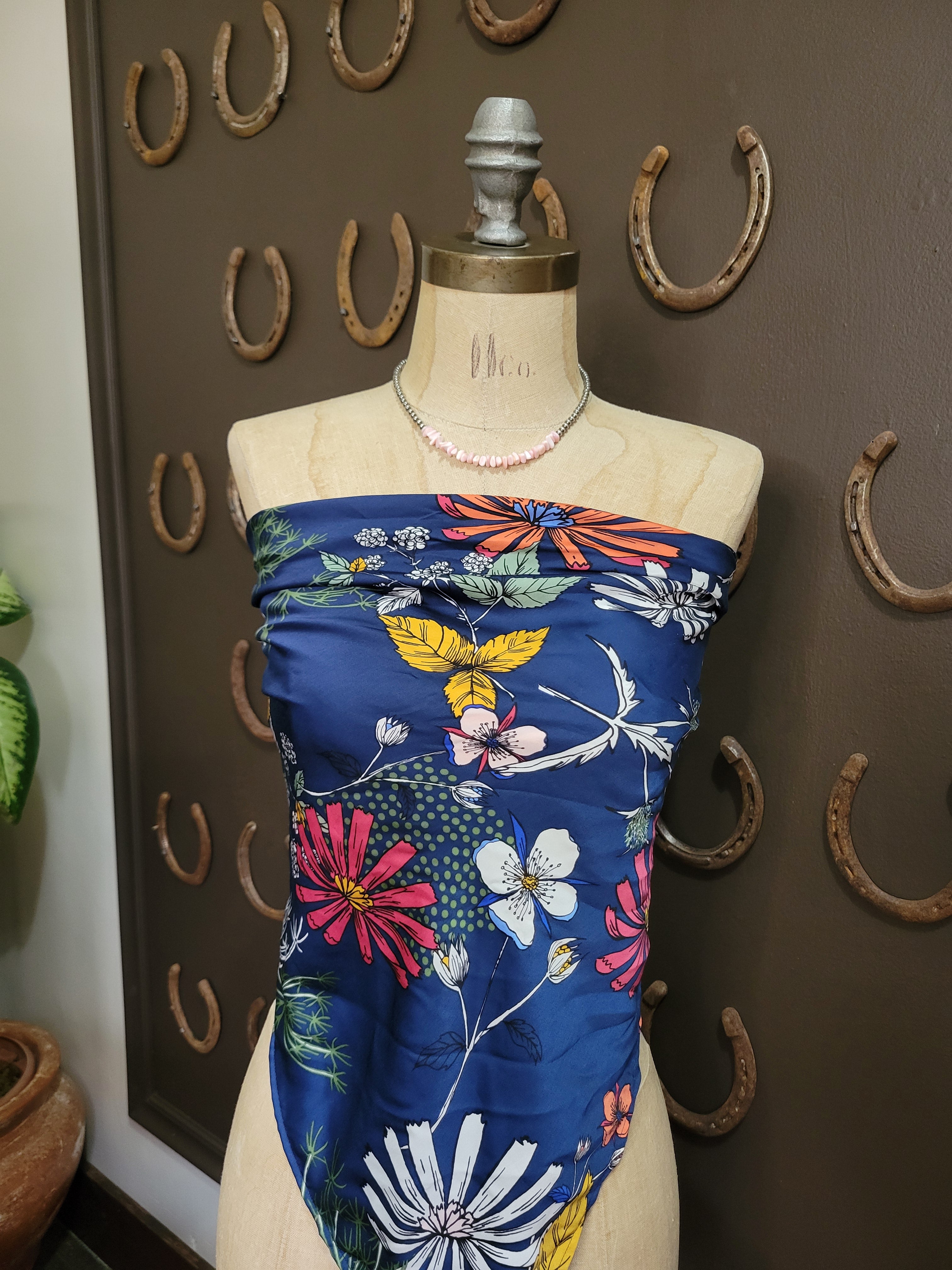 Elevate your wardrobe with this luxurious 100% silk handmade wild rag in this whimsical wildflower pattern! Versatile and timeless, this square scarf transitions seamlessly from season to season, layer it for cozy winter warmth or style it as a lightweight shirt for summer sophistication. Available in 36", this handcrafted piece combines comfort with effortless elegance. Perfect for adding a pop of color to any outfit while maintaining that authentic Western aesthetic. And let me tell ya, you've never been truly warm in the winter until you have worn a 100% Silk Scarf!