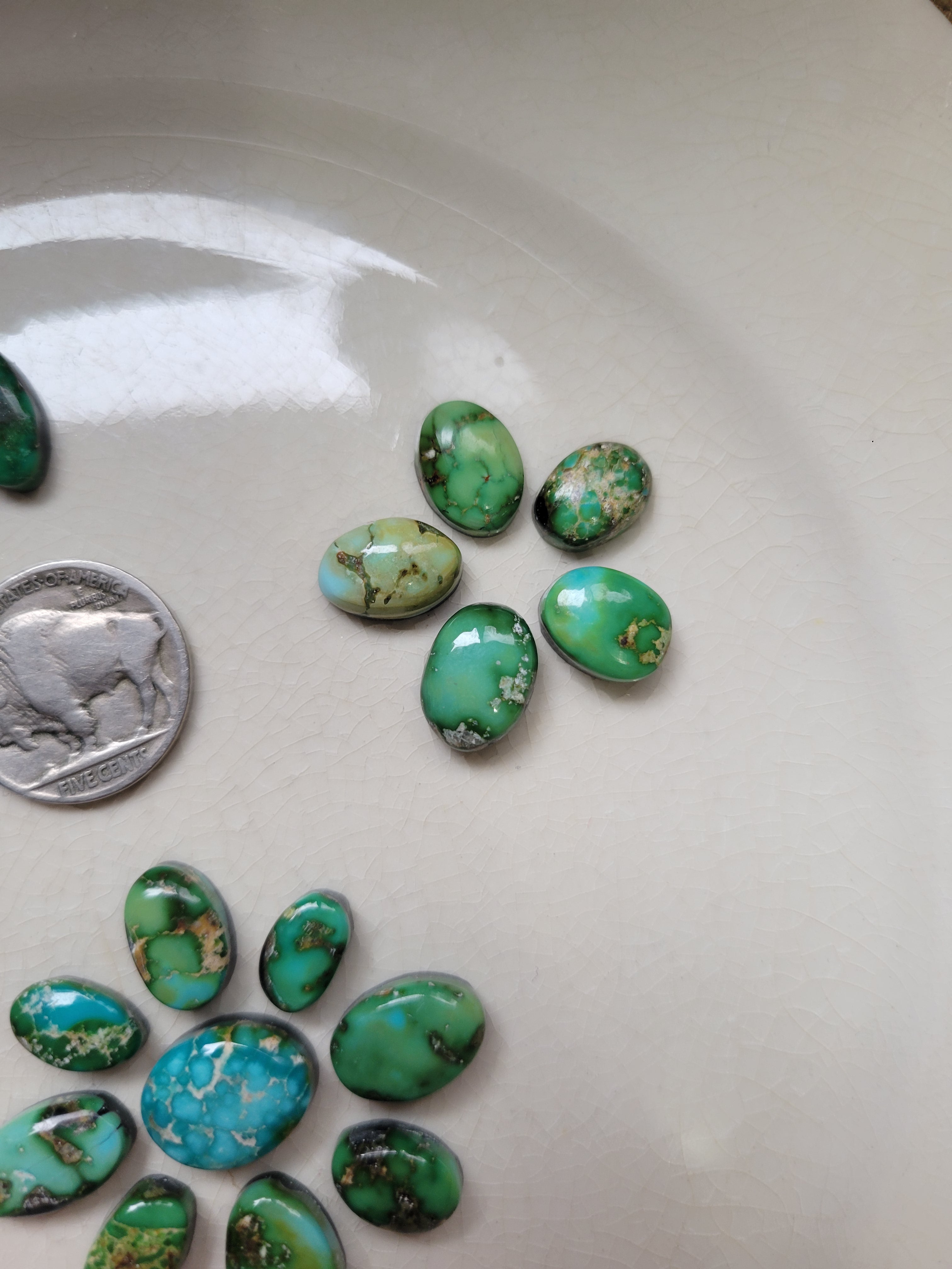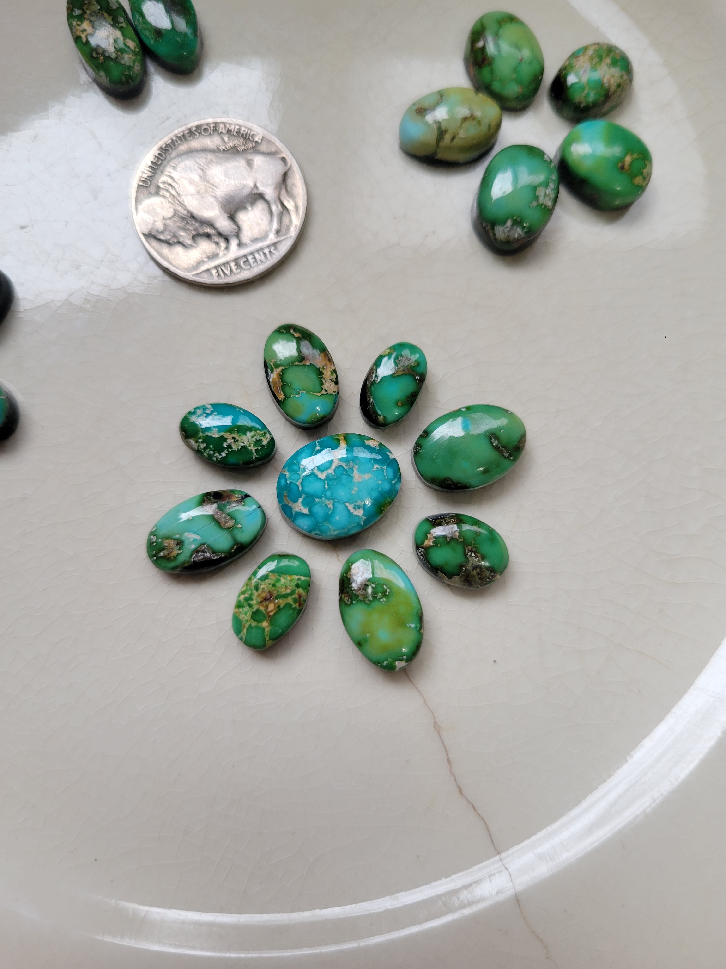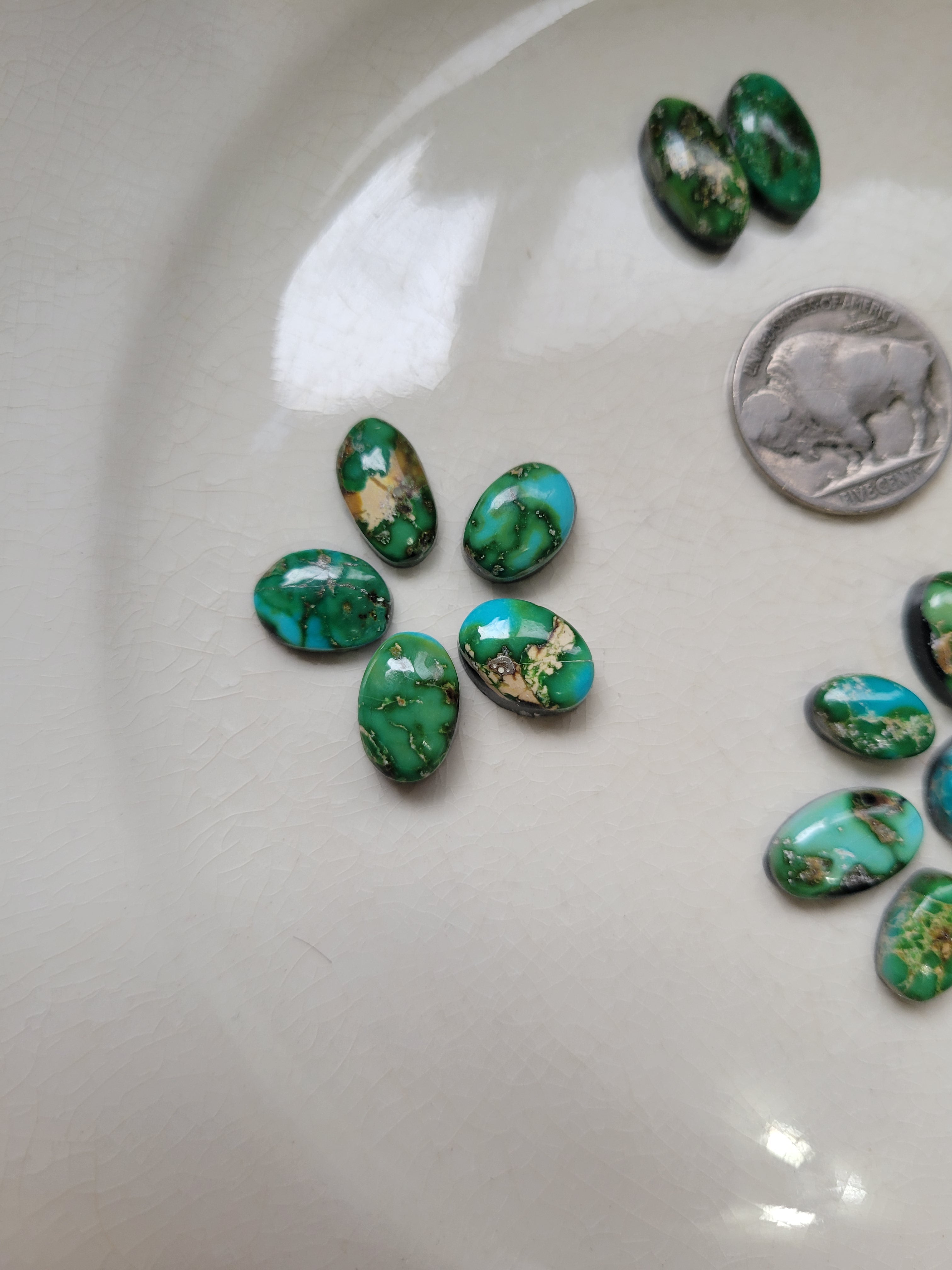 Each stone in this set features distinctive matrix patterns and rich blue-green hues characteristic of authentic Sonoran turquoise. This curated set includes 21 backed cabochons, perfect for jewelry makers, collectors, and artisans seeking beautiful, quality stones. Ideal for custom pendants, rings, and statement pieces. Each cabochon is unique, with natural variations that add character and authenticity to your creations.